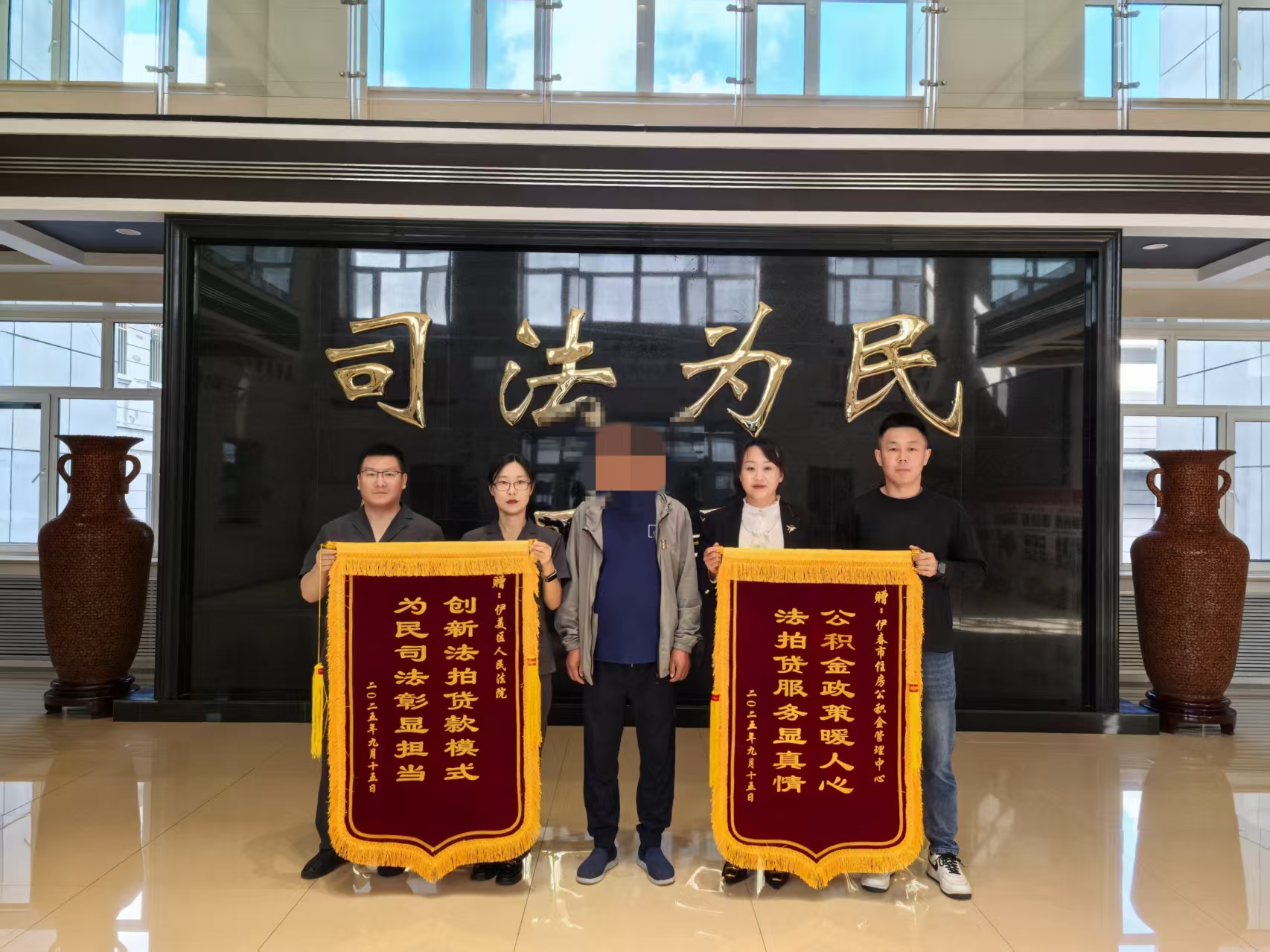 按照流程,竞买人在缴存拍卖保障金后,可通过公积金中心的贷款资质预审核并签订承诺书;竞拍成功后,凭法院出具的成交确认书等材料即可签订贷款合同,快速完成产权过户和抵押登记,剩余款项则由公积金中心直接发放至法院的指定账户。这套无缝衔接的流程不仅让购房者省心,更让法院的财产处置效率大幅提升,实现了“群众减速,执行加速”的双赢。新规落地不久,市民王先生便凭借这项业务成功“贷”得心仪的房屋,圆了自己的安居梦,幸运地成为政策的首位受益人,该笔业务也是全省公积金法拍房贷款的首笔业务。“从申请到放款全程不到3个工作日,流程比想象中还简单!”王先生难掩激动,“这项政策对于我们这些普通家庭可真是帮了大忙。”两面鲜红的锦旗诠释了王先生的心声。
