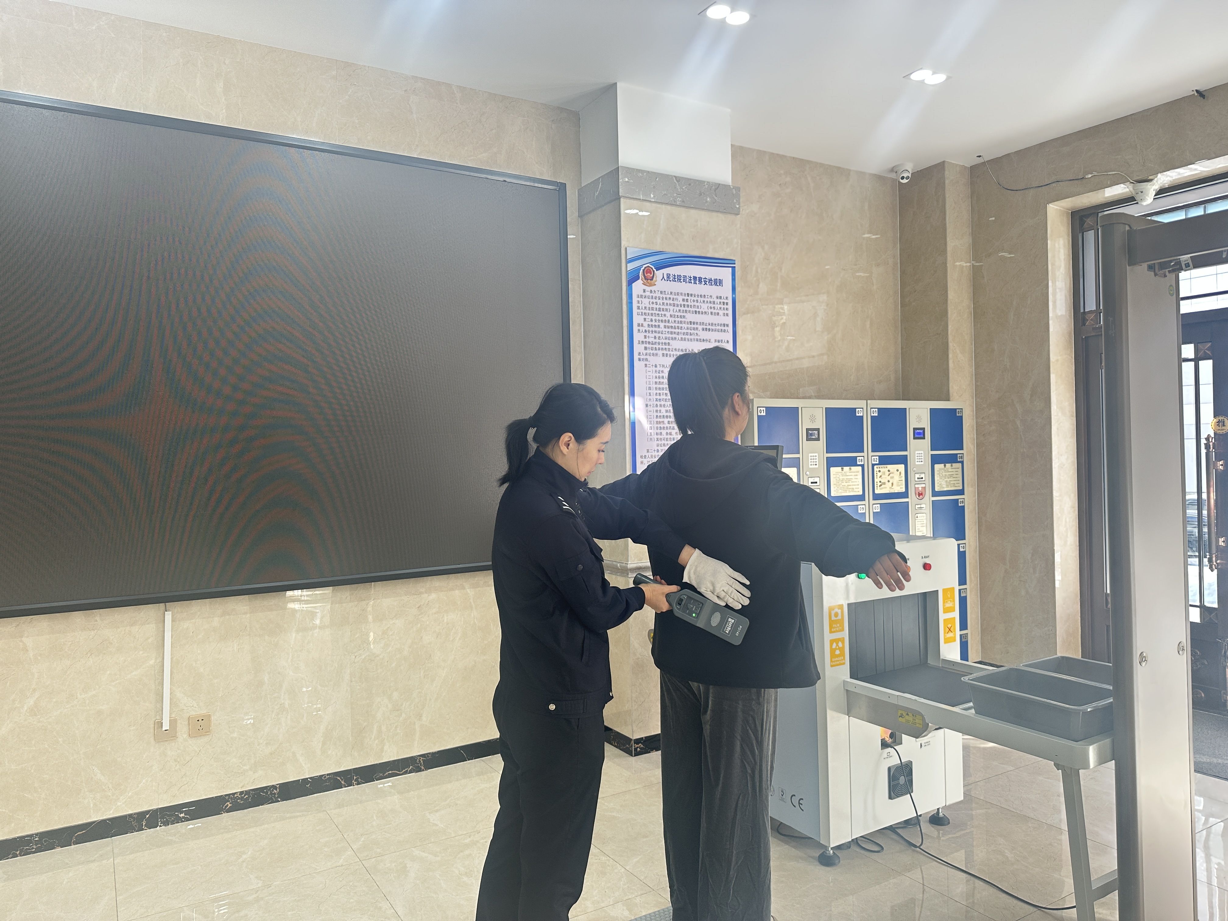 法院安全的第一道关口,由司法警察牢牢守护。他们秉持“逢进必检,逢检必细”的原则,每天熟练操作安检设备,排查各类危险物品,细致核对人员信息,耐心解答群众疑问。面对形形色色的来访人员,法警时刻保持“火眼金睛”,精准识别潜在危险,将安全隐患阻隔在法院大门之外。